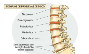 O disco intervertebral pode gerar dor tanto por um excesso de inervação quanto por sua deformação, e às vezes desenvolver protrusões e hérnias que podem acabar pressionando a saída do nervo intervertebral (radiculite).